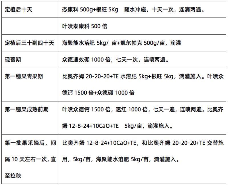 1、草莓一生中對鉀和氮的吸收特別強,在旺產期對鉀的吸收量,要超過對氮的吸收量。對磷的吸收,整個生長過程均較弱。據日本報道,667平方米面積栽植8000株、2600千克漿果產量,平均每株吸收氮3克、磷0.6克、鉀3.5克。