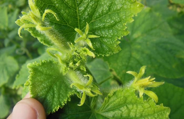 黃瓜生長期需鉀量最多,結(jié)瓜期需鉀量迅速增多,土壤缺鉀,會(huì)出現(xiàn)蔓細(xì)葉小,果實(shí)不能正常膨大,或化果。因此要適時(shí)適量的補(bǔ)施鉀肥。土壤氮肥不足,會(huì)造成葉片薄而小,生長緩慢,且黃化。植株矮小,花少花小,化果嚴(yán)重。易出現(xiàn)畸形果。嚴(yán)重缺氮,全株黃化,不坐果。