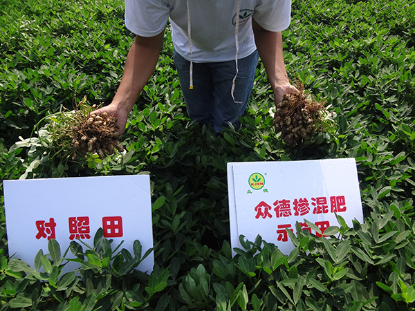 沂南縣辛集北左泉村農(nóng)民顧守武,去年用眾德(16-12-14)120斤/畝,生物有機(jī)肥80斤/畝,新朋友貴蓋美30斤,持力硼2袋,在翻地前一次性施入,到9月10號收獲期測產(chǎn)1173斤,與對照田產(chǎn)量1055斤相比,畝增產(chǎn)118斤,增產(chǎn)幅度11.2%。顧先生滿臉喜悅的說:“用眾德花生高產(chǎn)套餐方案效果非常好,歸功于眾德系列肥料原料考究,配方合理,營養(yǎng)全面,對于重茬、土壤酸化等問題障礙能夠得到有效解決,改良并活化土壤,特別是態(tài)康科、康樸系列葉面肥,能促進(jìn)花生根系和葉片生長,補(bǔ)充硼、鉬、鈣等中微肥,提高座果率、改善品質(zhì),提高產(chǎn)量,農(nóng)民最終獲得收益”