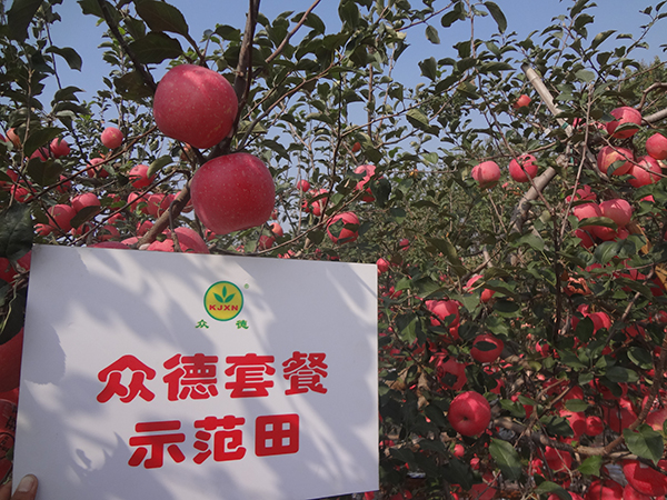 唐師傅對(duì)于眾德集團(tuán)的專業(yè)和專注很是滿意,同意這3畝地都用眾德的方案,以觀后效。通過(guò)一年的努力,到解袋時(shí),唐師傅相當(dāng)高興,因?yàn)楣蔡琢?.8萬(wàn)個(gè)袋的蘋(píng)果長(zhǎng)的個(gè)大,表光靚,苦痘病和痘斑病極少,他說(shuō)老果園長(zhǎng)出了新果園的水平。