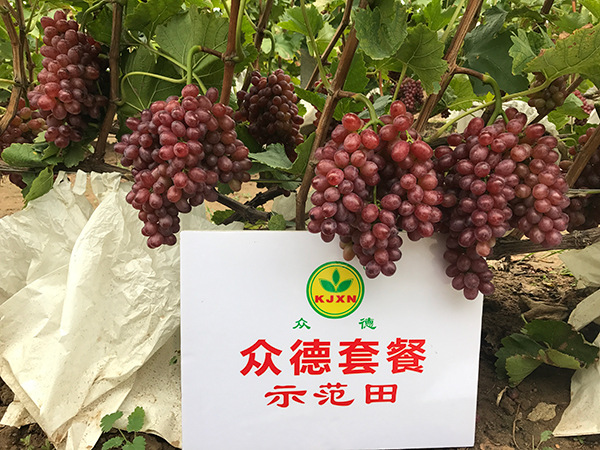 2015年10月20號,山東龍口市諸由觀鎮(zhèn)舒師傅的克瑞森葡萄喜獲豐收,通過專家現(xiàn)場測產(chǎn),4畝3年生示范園的畝產(chǎn)均在4000斤以上,而對照田只有3500斤,增產(chǎn)率達(dá)15%,今年畝效益超過2萬元。無論在果穗整齊度、顆粒大小、色澤、糖度、外觀上,示范園的葡萄均勝對照田一籌。
